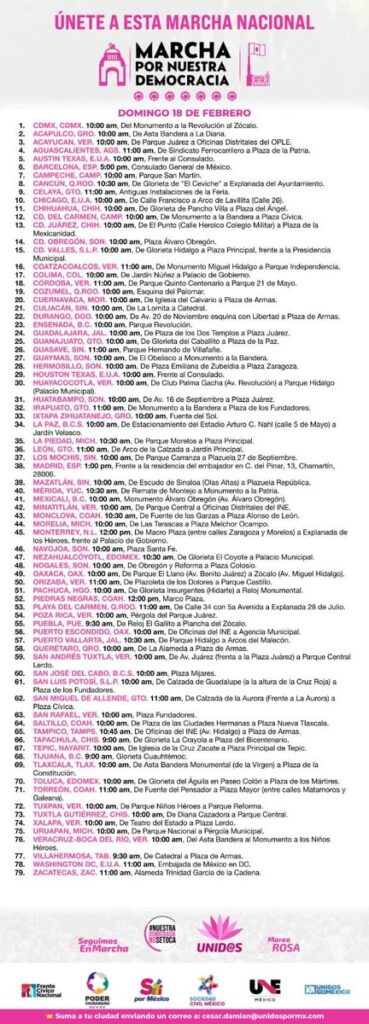Miembros de la sociedad civil han convocado a la ciudadanía para participar en la “Marcha por nuestra Democracia” en México, cuyo principal objetivo es mostrar el intéres de la ciudadanía por la defensa de los derechos ciudadanos y la libre expresión en las urnas, en las próximas elecciones que se llevarán a cabo en México en el mes de junio del 2024.